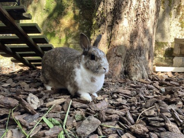 Sie kam als Witwe zu uns als ihr Mann verstorben ist und ihre Besitzer mit der Kaninchenhaltung aufhören wollten. Sie hat sich gleich gut eingelebt und lässt sich gerne von den anderen Kaninchen